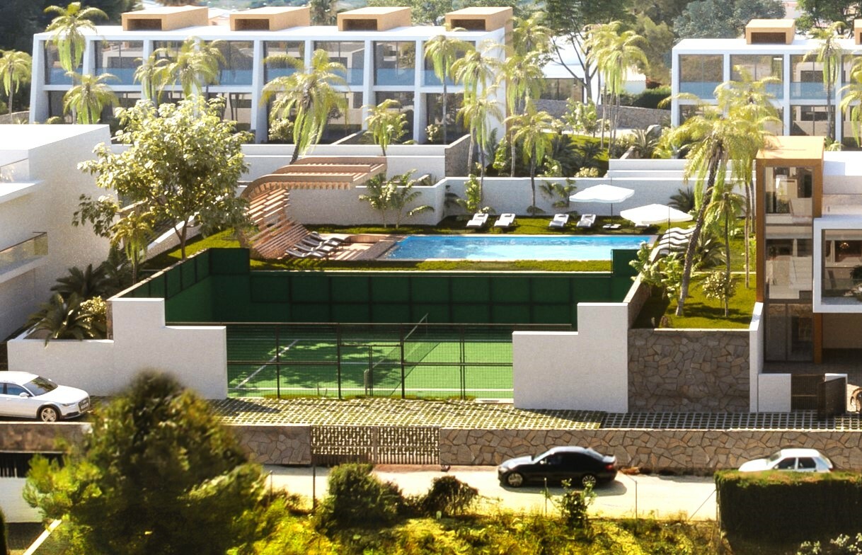 These Key Ready , very modern, spacious and energy efficient (energy class A) semi-detached / Hob Villas are built on a plot of 338 m2 on a new urbanization in an existing Villa district with beautiful views of the Olta Mountains. The houses have 3 bedrooms, all located on the 1st floor and 2 bathrooms, 1 of which is en suite. There is a separate guest toilet on the ground floor and a private driveway. The living area is 168 m2 and the entire house has underfloor heating. The kitchen appliances and air conditioning are included. The garden has an area of 262 m2, 1 bedroom on the 1st floor has a balcony. There is also a solarium of 17 m2. There is a communal swimming pool and a Padel court.