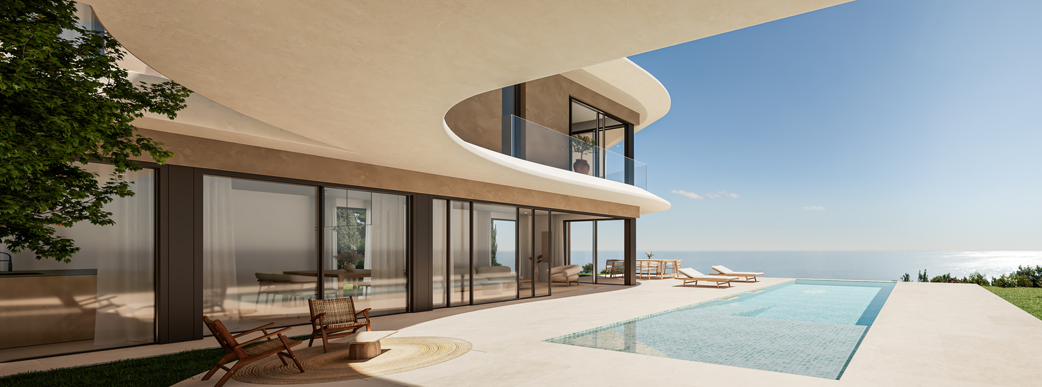 In Javea, one of the most popular places on the Costa Blanca, this functional Design Villa is being built in complete harmony with the environment in an absolute dream location. It is truly a privilege to live here and greet the majestic sun every morning that rises above the calm waters of the Mediterranean Sea. There are beautiful sandy beaches here, but also rugged areas with enormous cliffs. All necessary facilities are available at a short distance. You will also not be short of sports here, there are tennis and paddle courts, hiking trails, a riding school, golf clubs and marinas. There is also an international school.