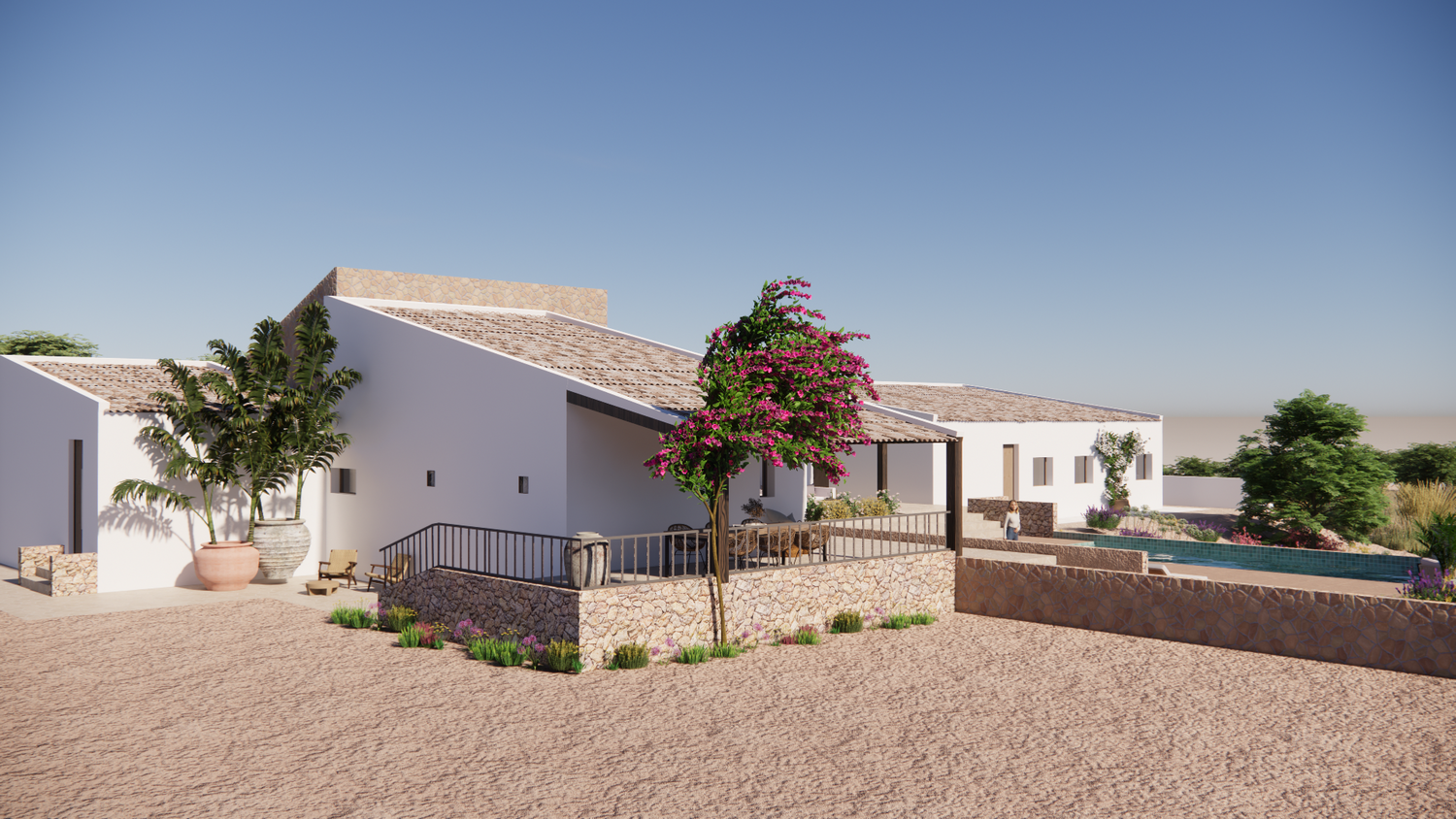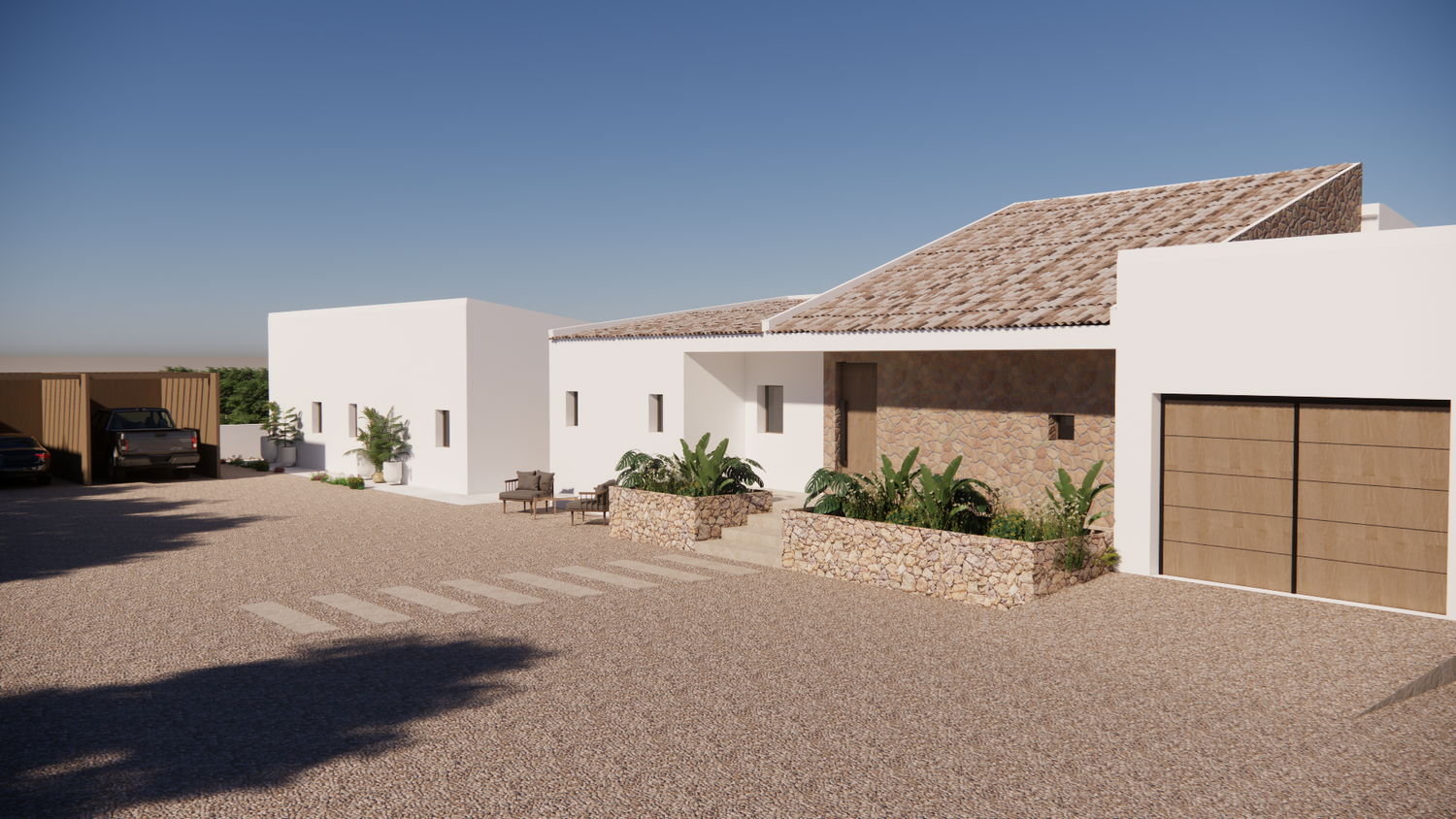 This stunning detached Finca with guest house is being built on plots starting from 15,000 m². This energy-efficient home of 340 m² with underfloor heating features 2 bedrooms and an en-suite bathroom. The spacious 65 m² living room has a modern open kitchen. The outdoor area features an 85 m² covered terrace, a fully equipped outdoor kitchen, and a 10 x 4 meter swimming pool that can be both heated and cooled. The guest house has 3 bedrooms, 2 bathrooms (one with a double shower and double sink), and a relaxation area. The property has an electric gate, a carport for 3 cars, and an integrated garage. The finishing and layout of the Finca and guest house can be fully customized to your own wishes. There are also various plots in our portfolio for you to choose from, ranging from a minimum of 15,000 m² to 100,000 m². The entire process from A to Z is supervised by the Netherlands; please also inquire about building possibilities in other areas.