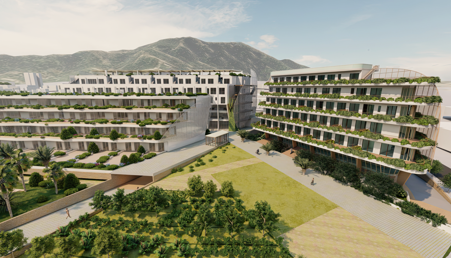 Albir is the perfect destination for nature lovers. Both the beach and the bays with crystal clear water, the nearby Sierra Helada natural park, the many different sports activities, it is truly a privilege to live here. The apartment complex, located in the heart of Albir, 200 meters from the entrance to the natural park, is fully enclosed and secured. With its 17,680 m2 of gardens, spacious terraces laid out on different levels with 9,800 m2 of planters and breathtaking views of the sea and nature, this location is very unique. A lot of attention has also been paid to the facilities within the urbanization, such as the various swimming pools, 1 with a pool bar, heated indoor swimming pool of 10 x 4.5 meters, fitness room, sauna, yoga studio, tennis, padel, cinema, a playroom for the children and a co-working space with all amenities.
