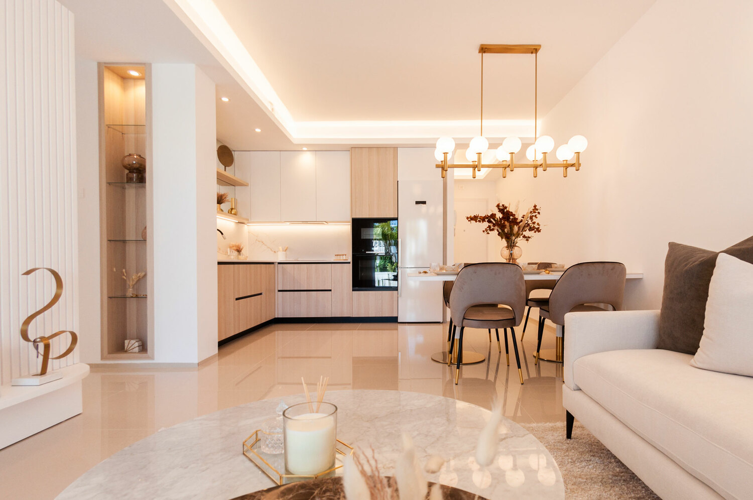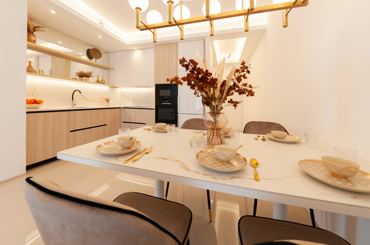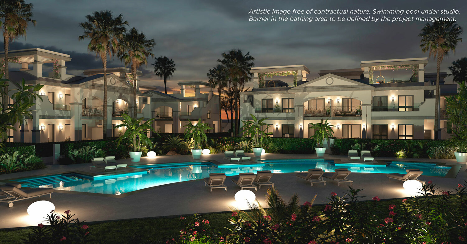 Deze in moderne Mediterrane stijl vormgegeven begane grond appartementen met 3 slaapkamers en 2 badkamers met vloerverwarming waarvan 1 badkamer en suite zijn gebouwd op een kleinschalige afgesloten urbanisatie. De appartementen zijn op een hoek gebouwd met een woonoppervlak van 107 m2 en zijn voorzien van een privé oprit. De tuin aan de voor-, zij- en achterkant heeft een oppervlakte van 100 m2 tot 200 m2. Aan de buitenzijde onder de trap is een extra wasruimte. De met zorg aangelegde binnentuin met mooie palm- en olijfbomen heeft een gemeenschappelijk zwembad. Het kwaliteitsniveau van deze appartementen ligt hoger dan gemiddeld, er is gebouwd met hoogwaardige materialen waardoor de woningen een zeer bijzondere uitstraling hebben. Zeer geschikt voor permanente bewoning of verhuur.