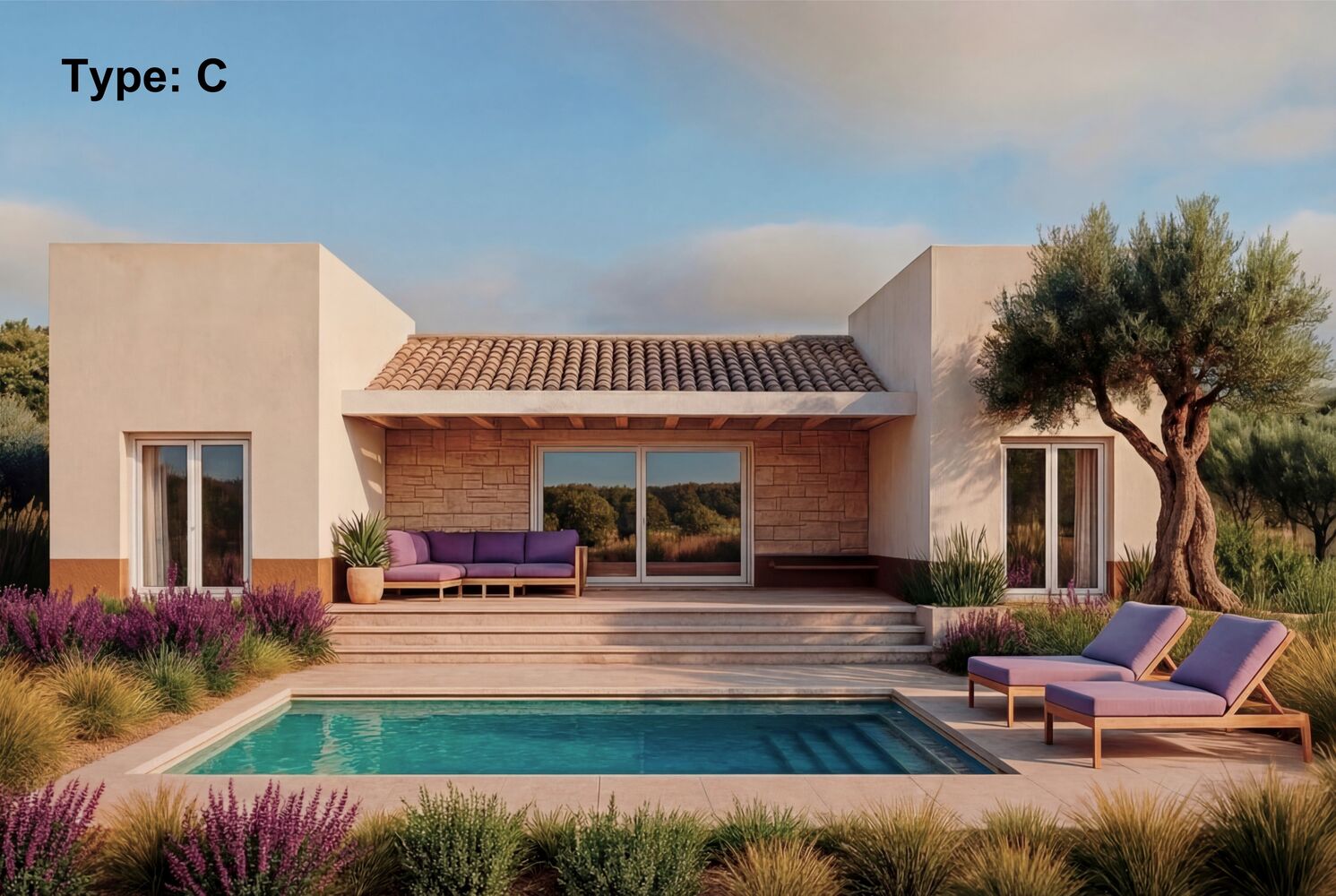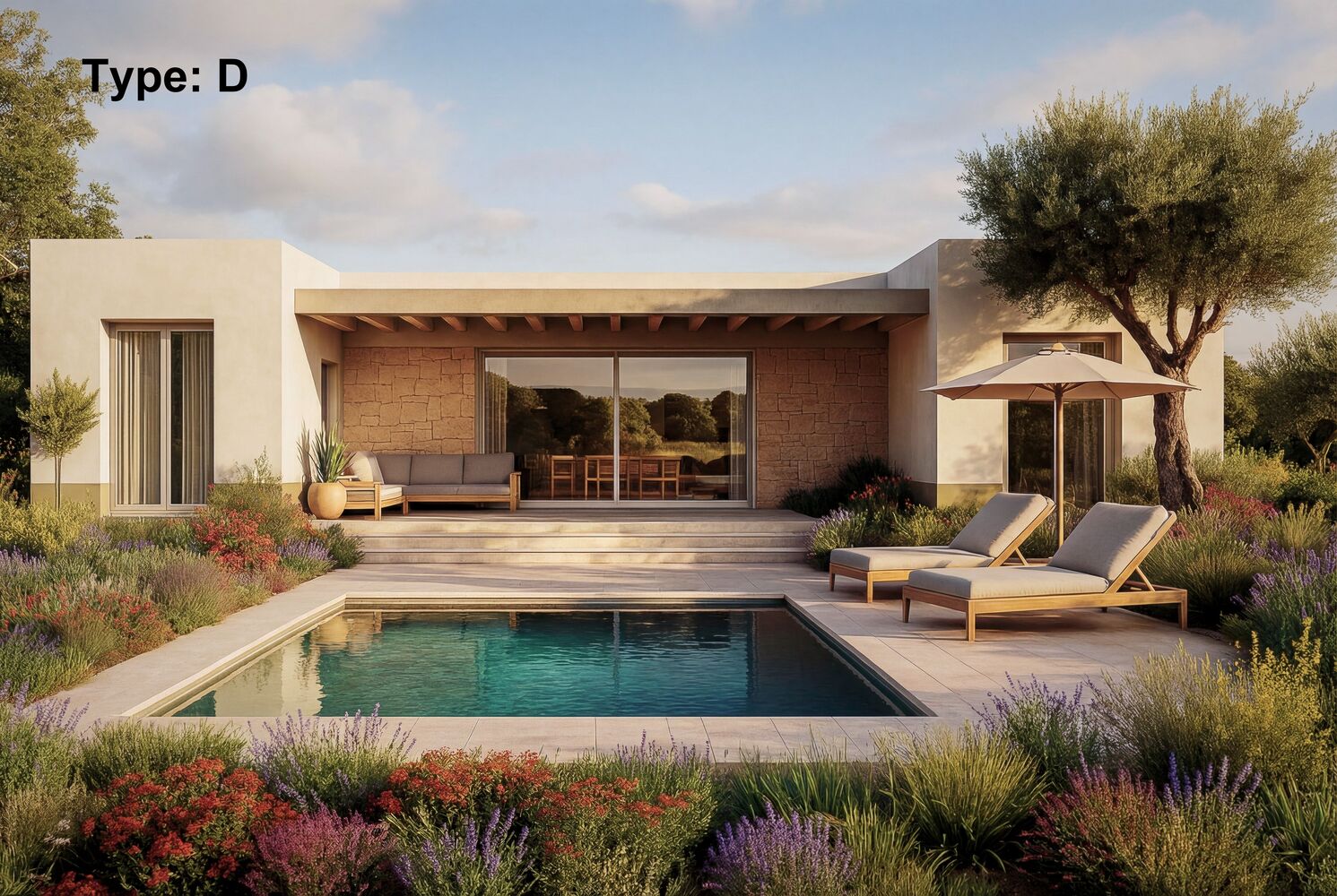 Deze schitterende gelijkvloerse Villa met 3 slaapkamers al v.a. €399.900,00 wordt gebouwd op een plot vanaf 10.000 m2. Deze energiezuinige woning met een frontbreedte van 18 meter en een bebouwde oppervlakte van 155 m2 heeft een prachtige lichtinval door de schuifpuien aan beide zijden. De woning heeft bij binnenkomst een hal met een garderobekast, een ruime living met open keuken van 46 m2 en nog een bijkeuken van 6 m2. Er zijn 3 slaapkamers en 2 vloer verwarmde badkamers waarvan de master bedroom een badkamer en suite en een walk-in closet heeft. De prachtige natuursteen accenten aan de binnenzijde en de natuurstenen buitenmuur bij het overdekte terras zijn erg mooie details. De indrukwekkende buitenruimte met overdekt terras heeft een zwembad van 8 x 4 meter met als optie deze te vergroten. Er is voor 250 m2 gravel aangelegd met worteldoek en er is uiteraard een privé oprit met toegangspoort. De afwerking en indeling van de woning kan nog geheel naar eigen wens worden ingevuld. Ook zijn er verschillende grondstukken in ons aanbod waar u uit kunt kiezen, van minimaal 10.000 m2. Het gehele proces van A tot Z staat onder Nederlandse begeleiding. Deze Villa kan worden gebouwd in 5 verschillende uitvoeringen.
