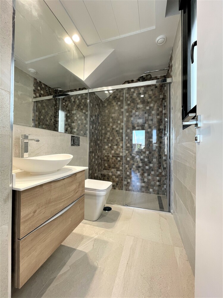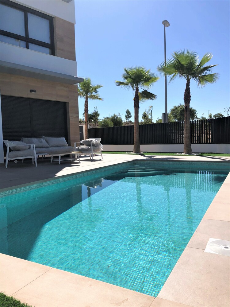 Deze mooie Villa’s met grote tuin hebben 3 slaapkamers en 3 badkamers waarvan 2 en suite. De master bedroom op de 1e verdieping heeft een balkon van 5 m2. De villa heeft een woonkamer van 38 m2 met een bijzonder mooie open keuken van zwarte houtnerf. De grote tuin rondom is maar liefs 120 m2 groot, heeft een zwembad van 6 x 3 meter inclusief een jacuzzi gedeelte met Jet-streams en een buitenkeuken. Het solarium van 47 m2 heeft een buitendouche, deels kunstgras en deels tegels met een prachtige houtnerf. De villa’s hebben een eigen oprit met elektronische poort.